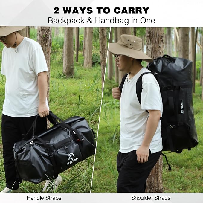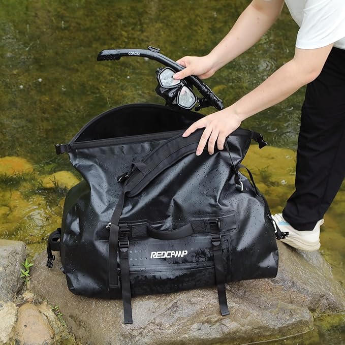 REDCAMP 80L Large Waterproof Duffel Bag, Rolltop Dry Backpack Duffle Bags with Quick-fixed Straps for Camping Motorcycle Boating Rafting Kayaking Paddle boarding, Black
