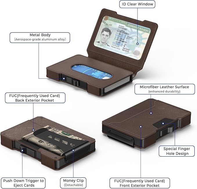 - 【High Quality & Minimalism】Precision-crafted from aerospace-grade aluminum alloy, our mens wallet redefines durability and sophistication. Despite this minimalist wallet for ment ultra-slim profile, it comfortably accommodates 7-8 cards and 5-10 bills, delivering spacious functionality without compromising on sleekness.