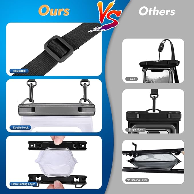 - [Dual-Layer Sealing, No Leaks] IPX8 certified waterproof case adds extra sealing layer, with an advanced locking mechanism and dual-seal closure for complete waterproof protection. Adopting the latest nano heat press technology to ensure high precision and seamless fit —keeping your items bone-dry even underwater