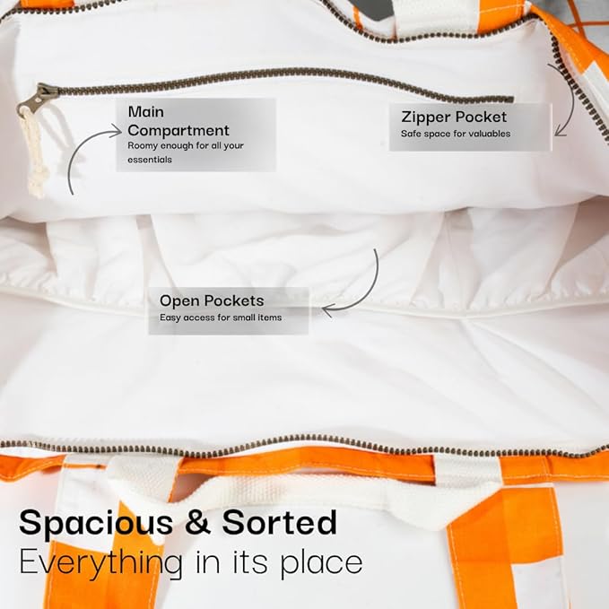 - Large Tote Bag: Our Canvas Tote Bag is built to carry it all — from travel must-haves to pool bag and beach tote for your essentials. Spacious, structured, and made to hold up to 50 lbs, it’s your go-to duffle bag for travle for packing "all the things" without compromise. Whether it's a weekend trip or a day out, this is the only carry on bag you'll need.