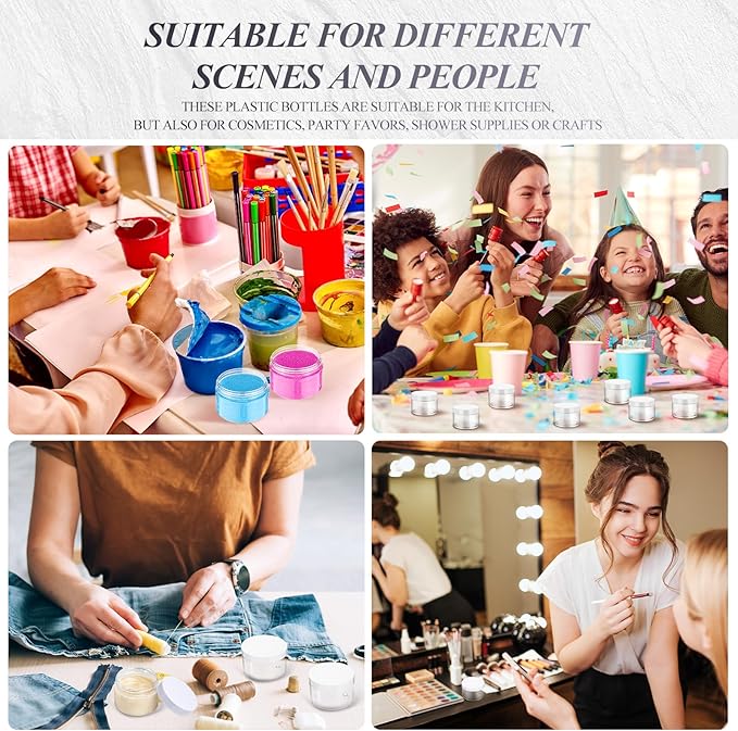- Package Includes: the package includes 12 packs plastic jars with screw on lid; They are refillable and sturdy for a long term use