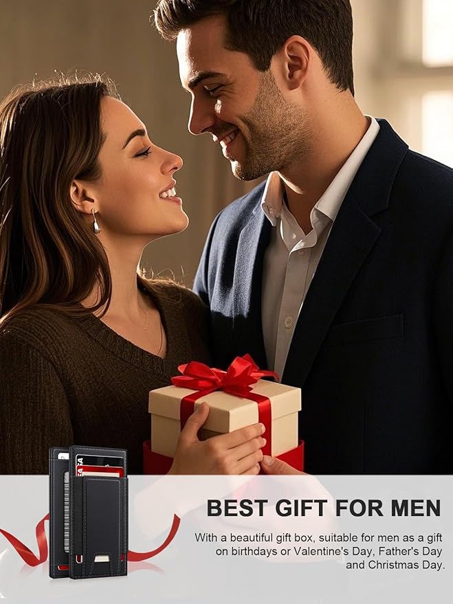 - PERFECT GIFT CHOICE: Designed to meet essential needs, this credit card wallet comes in an elegant gift box, making it an excellent gift for men on occasions like Christmas, Father’s Day, Valentine’s Day, or birthday.
