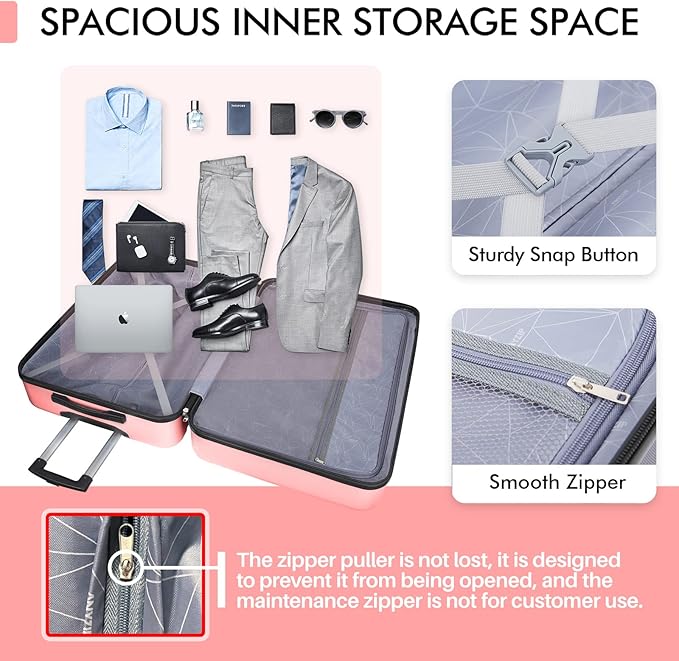 - [Larger storage space] We have adopted a more scientific structure design to maximize the use space in the box, and reasonable internal partitions make your luggage more tidy and can accommodate more.