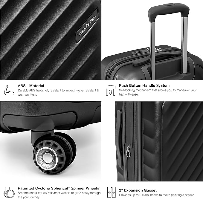 - SMOOTH MOBILITY: Navigate easily through tight spaces with the telescopic handle and adjust height with the push-button lock. The 360° Cyclone Spherical Spinner Wheels glides smooth and siliently over any terrain.
