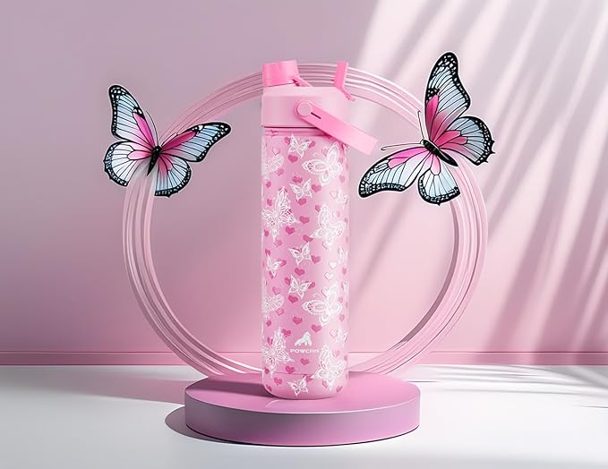 POWCAN 26 oz Insulated Water Bottle with 2-in-1 Straw and Spout Lid, Keep Cold 24H, Leak-Proof, Fits in Car Cup Holder, Stainless Steel Water Bottle for Sports, Travel, and School (Fluttering Amour)