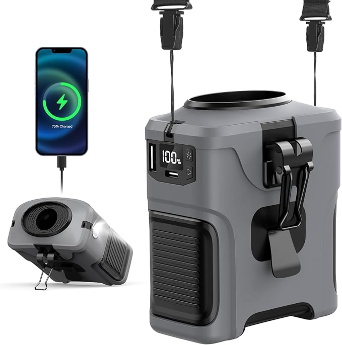 - 【Durable, Non-Slip & Multi-Scene Ready】Built for active lifestyles, this belt fan features a rugged plastic body with a silicone cover for shockproof, anti-slip protection. Weighing only 0.6lb, it’s lightweight yet sturdy enough for camping, biking, or kitchen work. Long-press the button to activate the bright light for nighttime and double-tap SOS mode—ideal for emergencies.