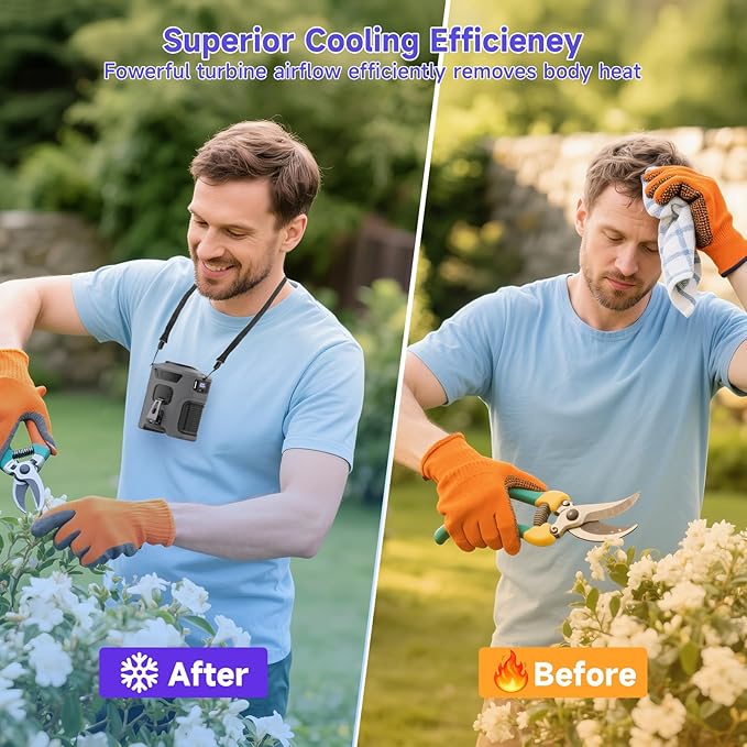 - 【Extended Battery Life & Fast Charging】Never worry about running out of power! The massive 10000mAh rechargeable battery offers extended runtime, while the Type-C charging (4-5 hours) ensures quick refuels. The energy-efficient design keeps you cool all day, whether you're hiking, fishing, or working in hot environments like farms or construction sites.
