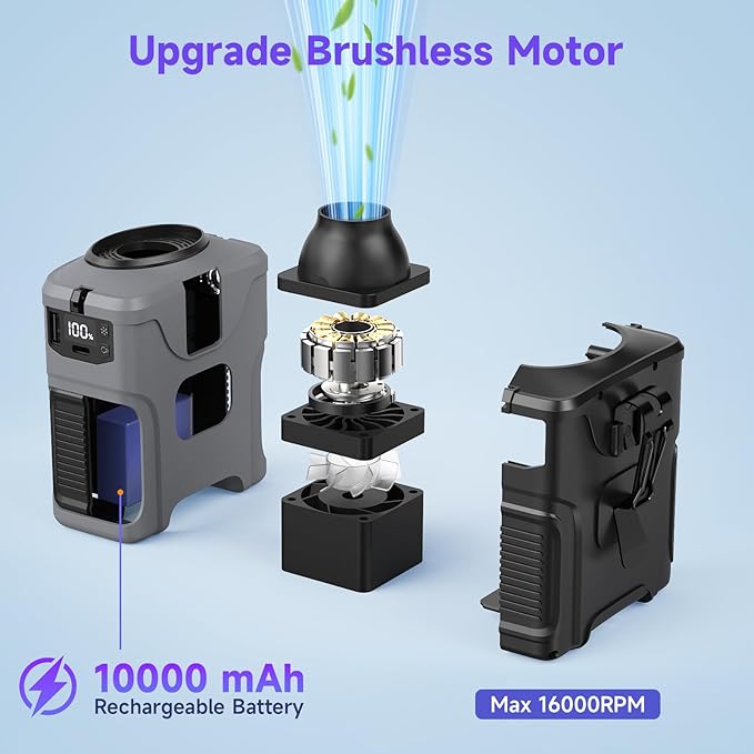 - 【Ultra Powerful 6-In-1 Cooling & Emergency Companion】More than just a portable waist fan, this wearable fan is a versatile 6-in-1 device: a waist clip fan, desk fan, neck fan, LED lighting and SOS mode. The built-in 10000mAh battery not only keeps you cool for hours but also powers your phone in critical situations. Simply clip it to your belt, hang it around your neck, or place it on a desk—stay cool and prepared anywhere!