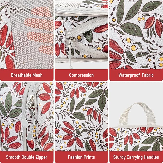 - Space-Saving Compression Design – Achieve up to 60% more luggage space with our dual-zipper compression system! Simply pack clothes into the cubes, zip the outer layer tightly, and compress bulkier items like jackets, sweaters, or seasonal home-storage fabrics. Perfect for maximizing suitcase capacity or organizing closets.