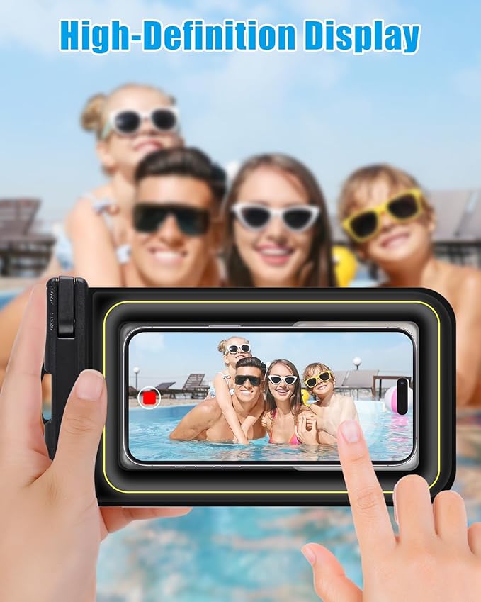 - High-Definition Underwater Photography: High-transparency material (99% light transmittance) ensures clear display of the phone screen content, and the transparent back frame does not obstruct camera use. This waterproof phone case delivers crystal-clear underwater imagery, making it the perfect accessory for snorkeling, kayaking, rafting, or even showering while holding your phone. The waterproof phone case does not affect Face ID, video calls, or taking photos/videos, making it an essential phone accessory for travel, vacations, cruises, boating, kayaking, and more