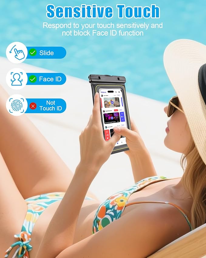 - Precision Design and Sensitive Touch: The waterproof phone case uses high-frequency heat-sealing technology with a seamless design, making it easy to operate the side buttons. Made from high-quality soft PVC material with a transparent front window, it allows easy access to the touchscreen, camera, calls, and other functions (excluding fingerprint recognition), providing precise touch control and quick response, letting you easily watch videos and check emails