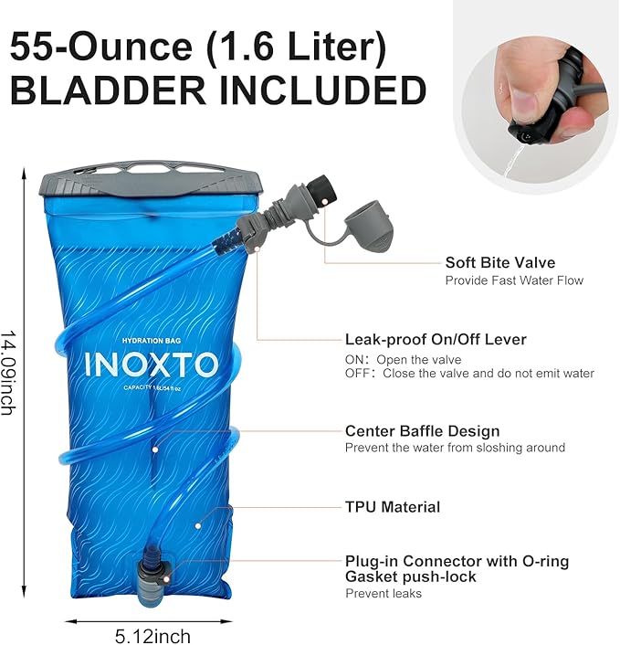- 【Extensive Applications】Our hydration pack with water bladder is the perfect sports gear you hydrated while running, marathon, cycling, hiking, skiing, climbing, race and training or any adventure outdoors. This running hydration vest can be a are great companions for families and friends. IX INOXTO hydration backpack is always be there for you. If you have any problems, please reach out to us, we will reply within 24hrs.