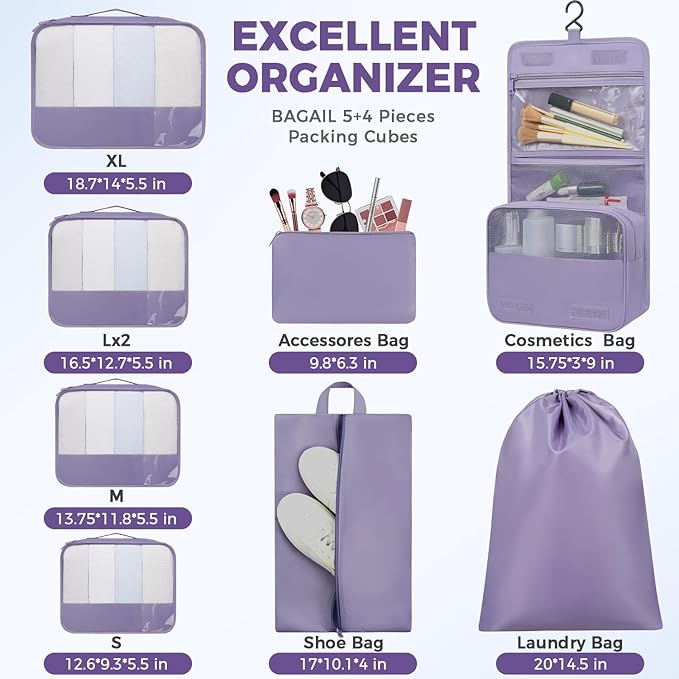 BAGAIL 9 Set Packing Cubes Luggage Packing Organizers for Travel Accessories