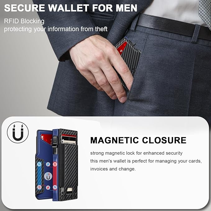 - EXPANDABLE CASH SLOT: Unlike typical money clip wallets for men, the back of this minimalist wallet for men is upgraded with an expandable cash slot, capable of holding a few folded bills or up to 3 cards.