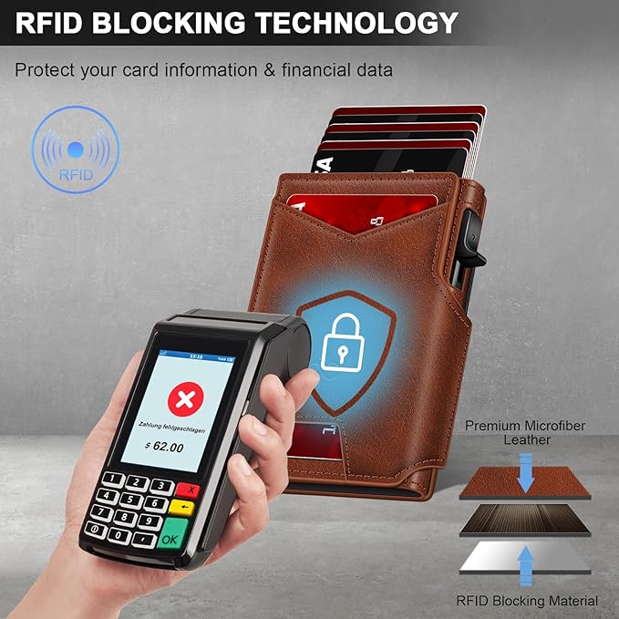 - RFID BLOCKING: The RFID Card holder of this metal wallet for men blocks unauthorized scans of your credit cards, debit cards, and driver’s license, providing maximum protection for your private information.