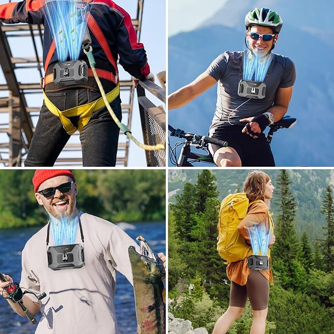 - 【Your Summer Outdoor Essential】Compact and travel-ready, this waist clip fan easily fits in backpacks or clips to belts for hands-free cooling. Perfect for outdoor lovers and workers—whether you're on a jobsite, farm, or summer getaway. Includes a neck strap, USB cable, and manual, making it the ultimate wearable fan for beating the heat anytime, anywhere