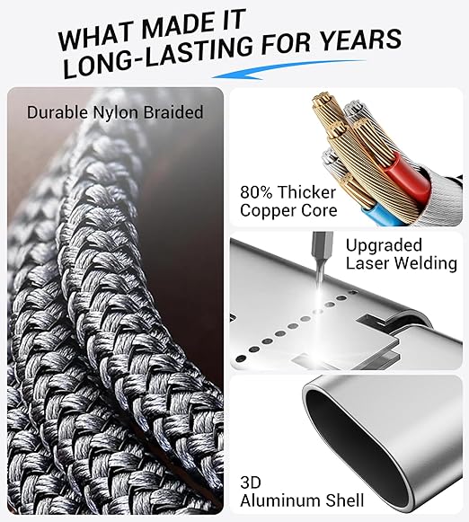 - 【High-Quality Materials】Crafted with durable nylon braid and a laser-welded 3D alloy connector, this multi-charging cable withstands 45,000+ stretch tests while offering Long-term limited warranty support for iPhone charger cord or multi-device charger replacements