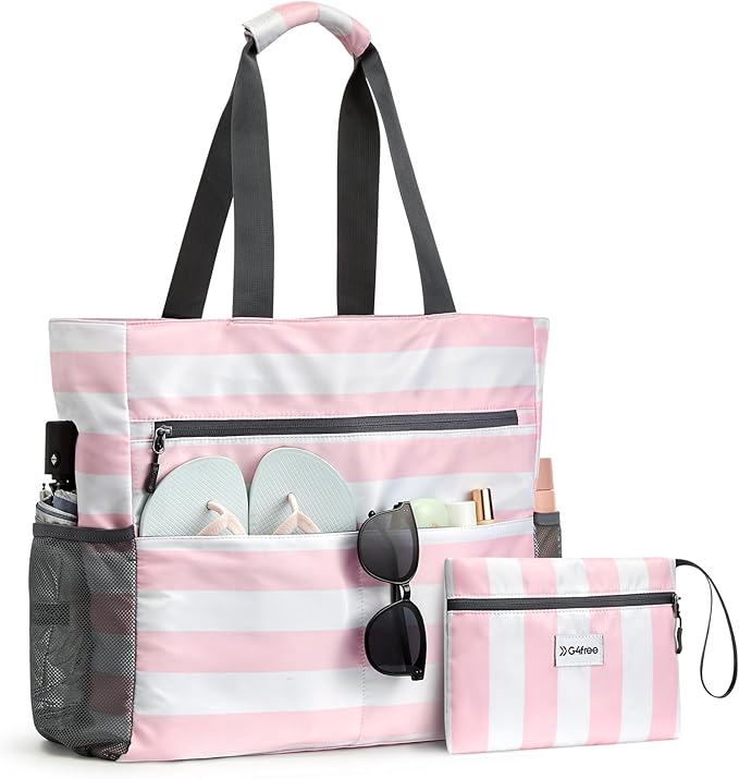 - 【Large Capacity】G4Free beach bag stands out for its large size, 21.6"*6.7"*15.4". Extra gift small purse. It can easily accommodate all the necessary beach essentials for a family of four. And This is a 2-in-1 design bag. The large tote bag can be folded into a small bag, which is very convenient to carry.