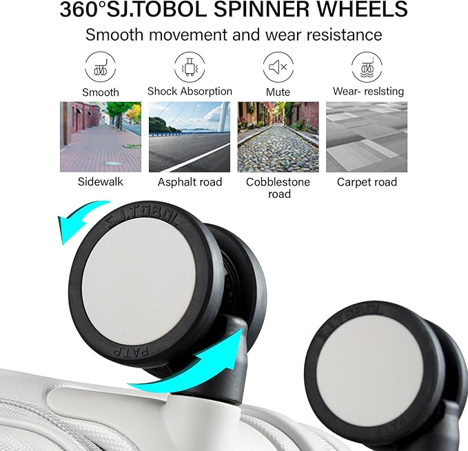 - SPINNER WHEELS & TSA CODE LOCK: TSA combination lock more secure and easy to set to keep your luggage privacy, ensure that you will have safer and more reliable when traveling. 360°spinner wheels made from SJ. TOBOL universal with wear-resistant that rolls extremely easily to make it carry through the airport smoothly. Integrated deep storage design has spacious main compartment keep you packing luggage conveniently and organized during your journey