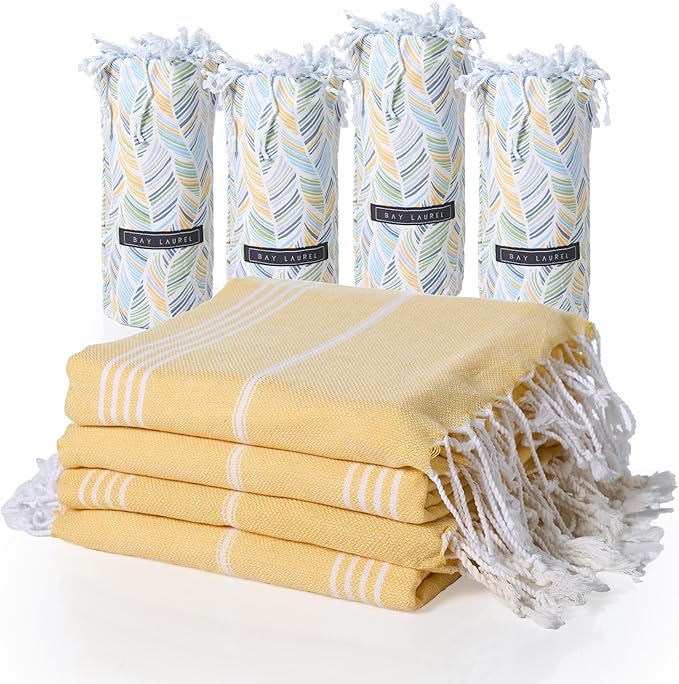 BAY LAUREL Turkish Beach Towel with Travel Bag 39 x 71 Quick Dry Sand Free Lightweight Large Oversized Towels Light - Pack of 4 (Pack of 4 - Dandelion with Floral Bag)