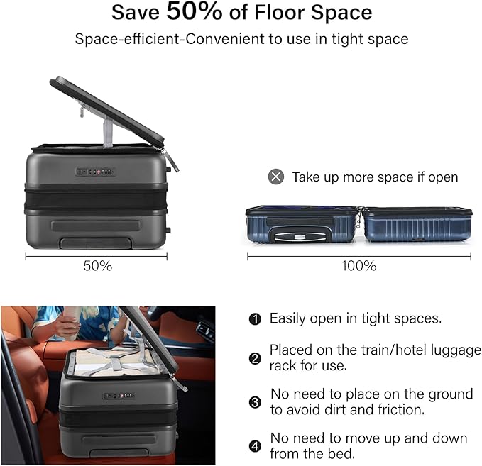 - Revolutionary Top Opening Trunk Design: Unlike traditional luggage, our Top Opening Luggage functions as true Trunk Luggage. Access contents vertically without floor space – perfect for tight airport queues or car trunks. Doubles as a sturdy storage solution at home