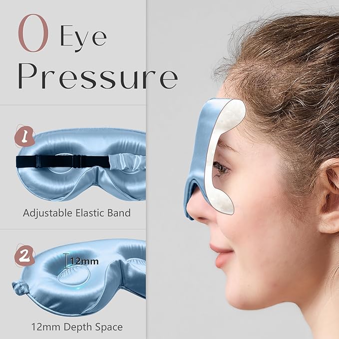- ✅3D Contoured Design, Comfortable Fit: Features an ergonomic 3D contoured design that perfectly fits the contours of your face, no pressure on the eyes or nose, silk sleep mask provides a barely-there feel.