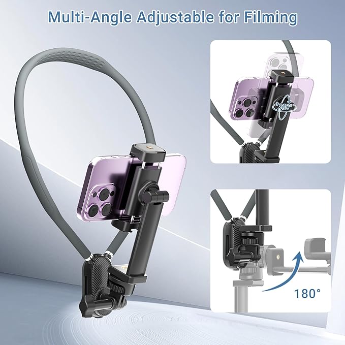 Neck Phone Holder for Go Pro/Video Recording, Wearable Hands Free POV/Vlog Selfie Mount with Chest Strap, 360°Adjustable Around Cell Phone Stand Compatible with iPhone16 15 14 13 12 Galaxy Android