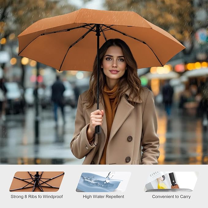 - Waterproof Umbrella - SoulRain Compact Travel Umbrella is Windproof, waterproof. The fabric which is made of 210T pongee is smoother, thicker and sturdier.8 fiberglass umbrella bones, very strong.