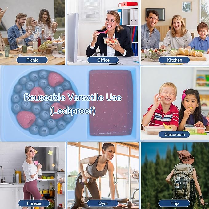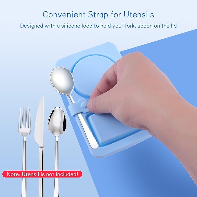 - Integrated Utensil Strap Design: Built-in silicone strap securely holds your spoon, fork, or flatware in place, so you’ll never forget your utensils again—perfect for office snack, party, camping, picnic, dailiy use