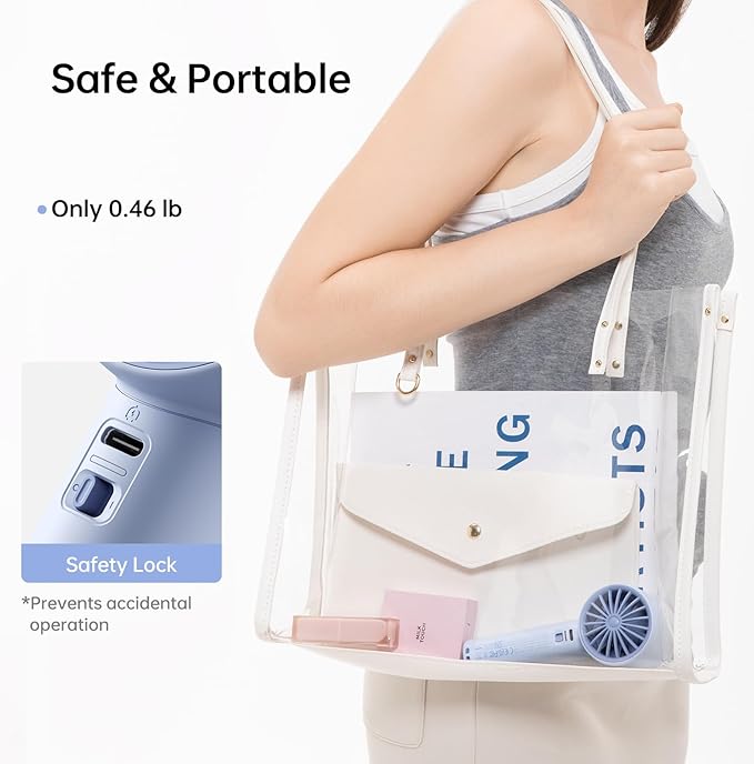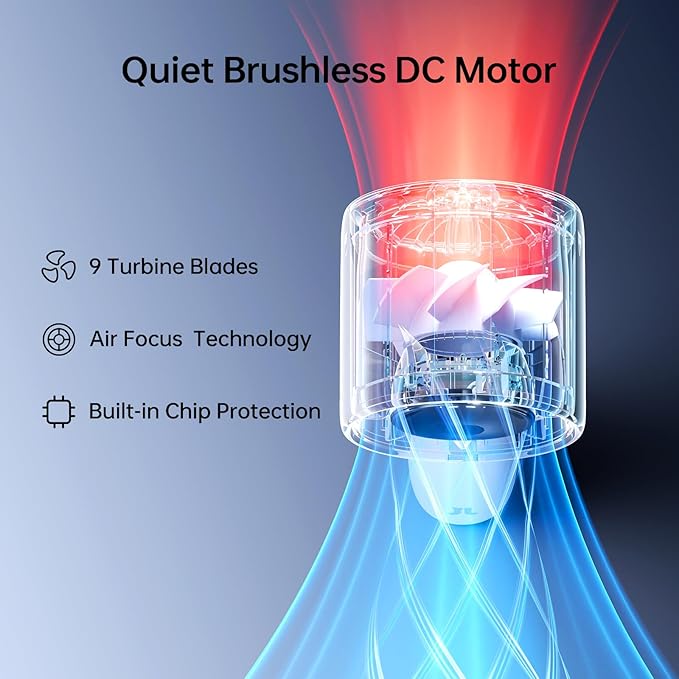 - 9 Blade Design - Ultra Quiet: With 9 ultra-quiet blades, this mini portable fan operates at a low noise level of 56-76 dB, ensuring a peaceful cooling experience. And the aerodynamic blades deliver strong, stable airflow for optimal comfort