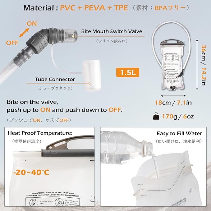 - Hydration System: Compatible with a 1.5 L bladder, this hydration backpack ensures you stay hydrated during hiking or biking. Simply bite and pull the valve for easy access to drinking water. A convenient choice for trail running and backpacking