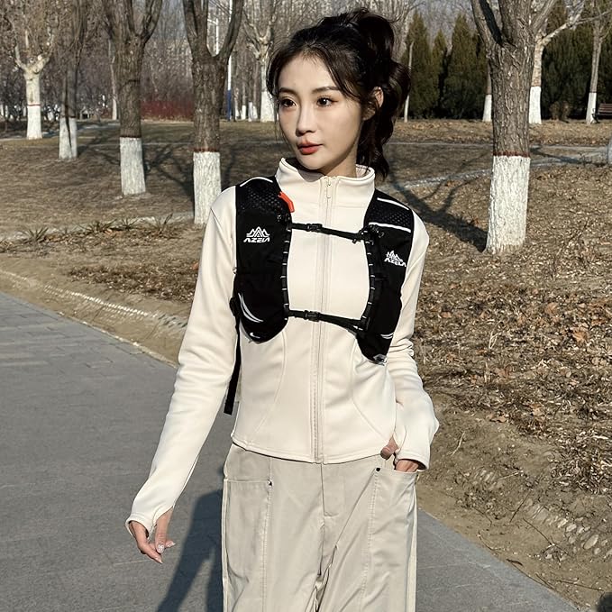 - Practical Pocket Layou: This hydration running backpack offers just enough space for your essentials. Front pockets hold a water bottle, phone, keys, or snacks, while the back compartment fits a 1.5L bladder or lightweight gear