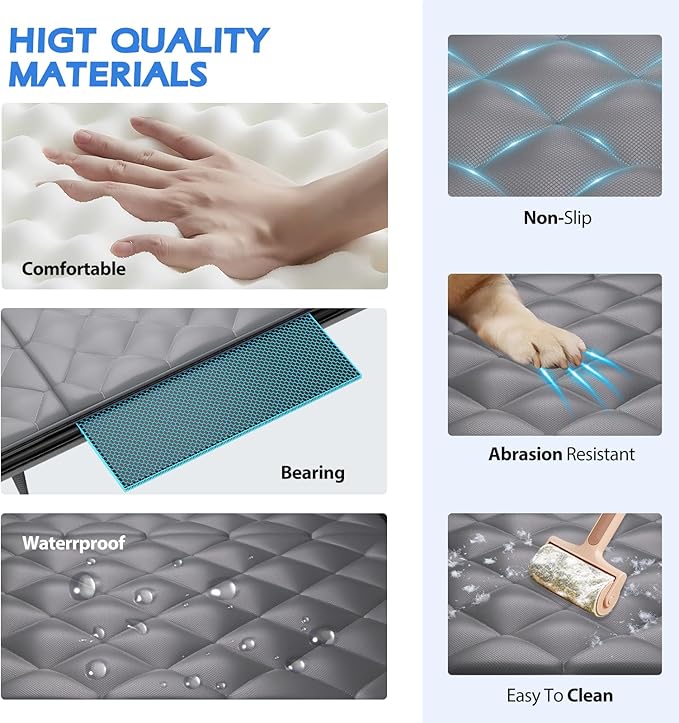 - 【Hard Bottom X3,Durable Material&Upgraded with Egg Crate Foam】This backseat cover for dogs in truck upgraded with Egg Crate Foam, Adding supportive foam helps optimize spinal pressure distribution in dogs by 42%, Let our baby enjoy a more comfortable trip.