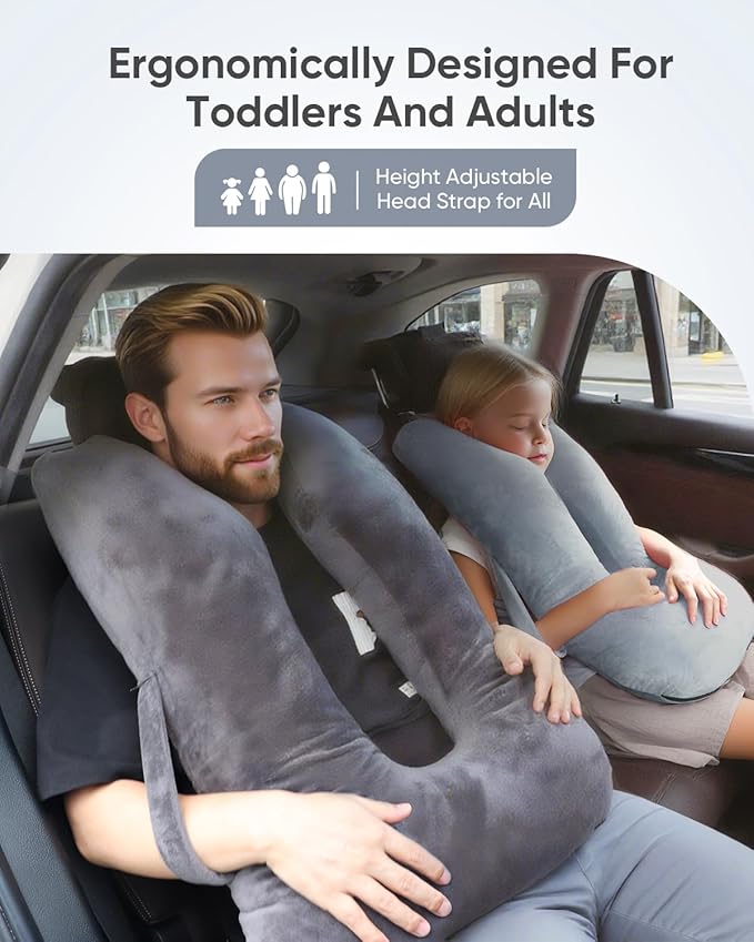 - 【Better Supportive】 Upgraded neck curve with raised padding contours naturally to facial structure, providing better head and neck support. Fabric handles on both sides for arm support allowing you to rest your arms naturally. The middle of the car pillow features a cylindrical design to provide body support for sleeping and lying. The car sleeping pillow shaped like a capital U, when users lying inside it, they'll feel as if cradled.