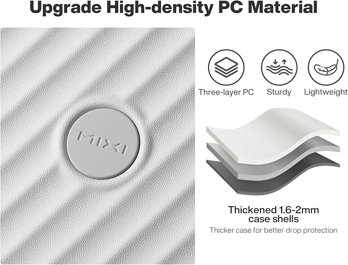 - 【German Covestro PC Material】Mixi suitcase is made of three-layer Covestro PC material, offering exceptional scratch resistance and impact resilience. This lightweight and durable material withstands heavy loads and has better resilience, ensuring that your items are protected during the journey