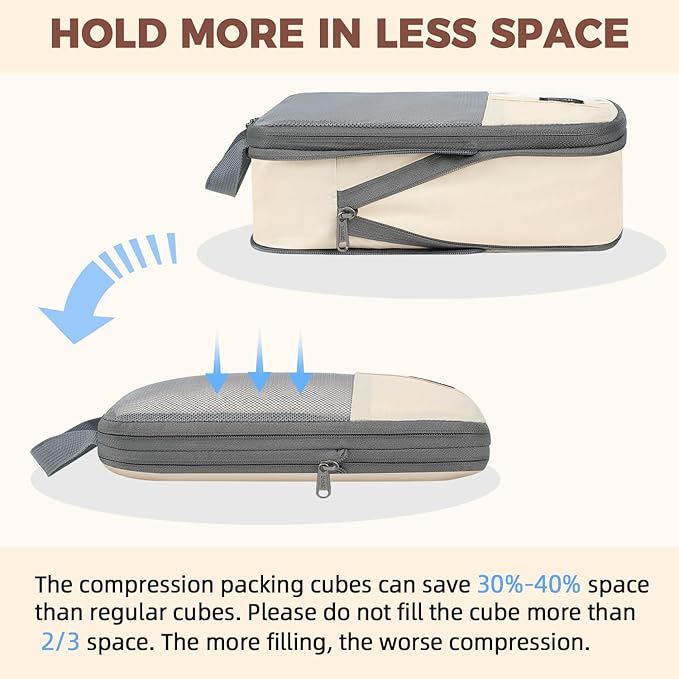 BAGAIL 6 Set/4 Set Lightweight Compression Packing Cubes with Packing List, Anti-Tearing Expandable Organizer Bags for Travel