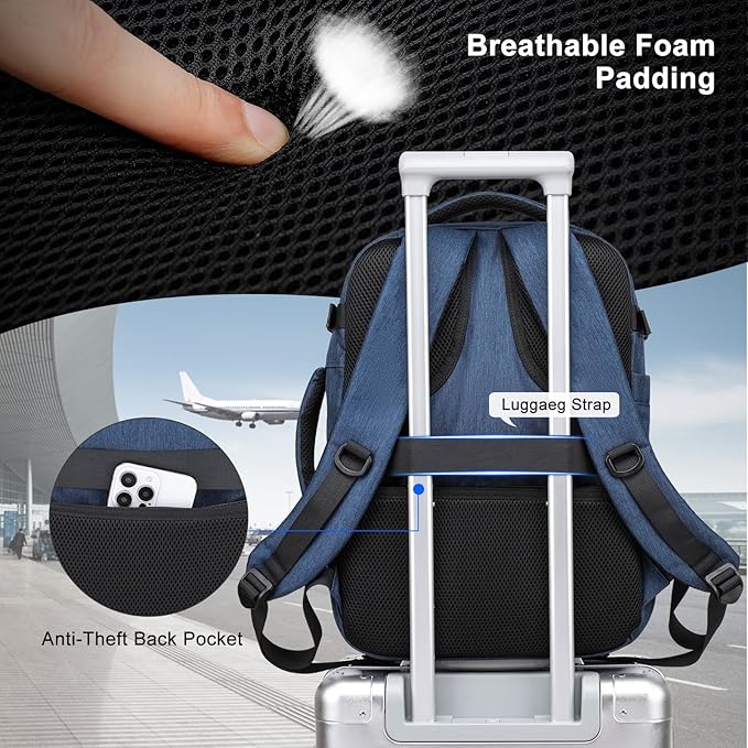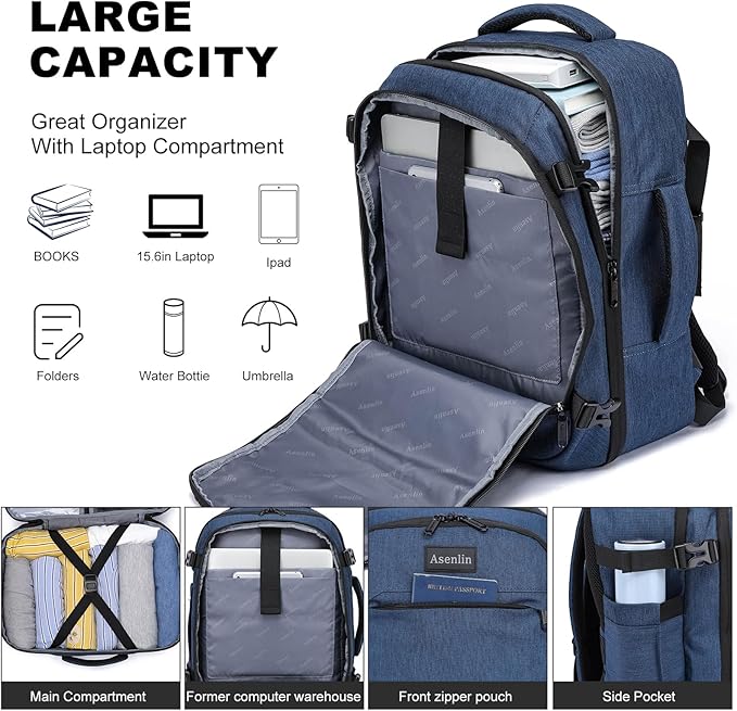Asenlin 30L Travel Backpack for Women and Men,Fit 15.6 Inch Carry on Backpack Flight Approved Luggage,Weekender Bag Water Resistant Laptop Backpack-Blue