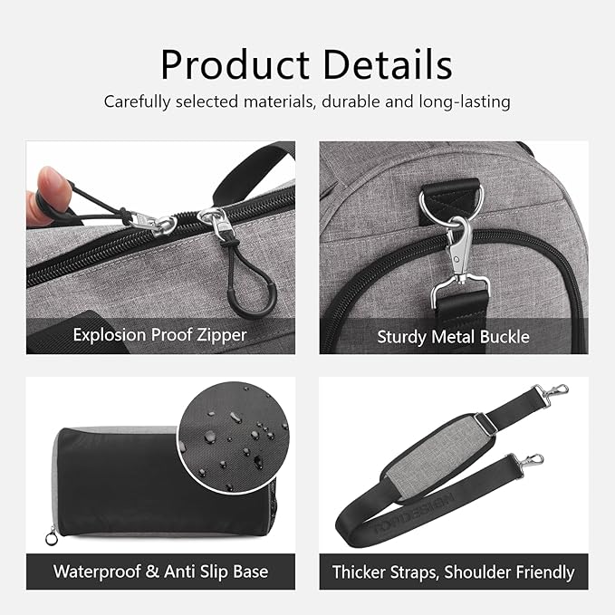 - MULTIFUNCTIONAL: It can be used for gym, sports, fitness, workout, travel, camping, hiking, cycling trip and other outdoor activities. Also good as a weekender, luggage, carry-on. The adjustable and removable shoulder strap offering flexibility for hands-free experience or a quick grab-and-go option.