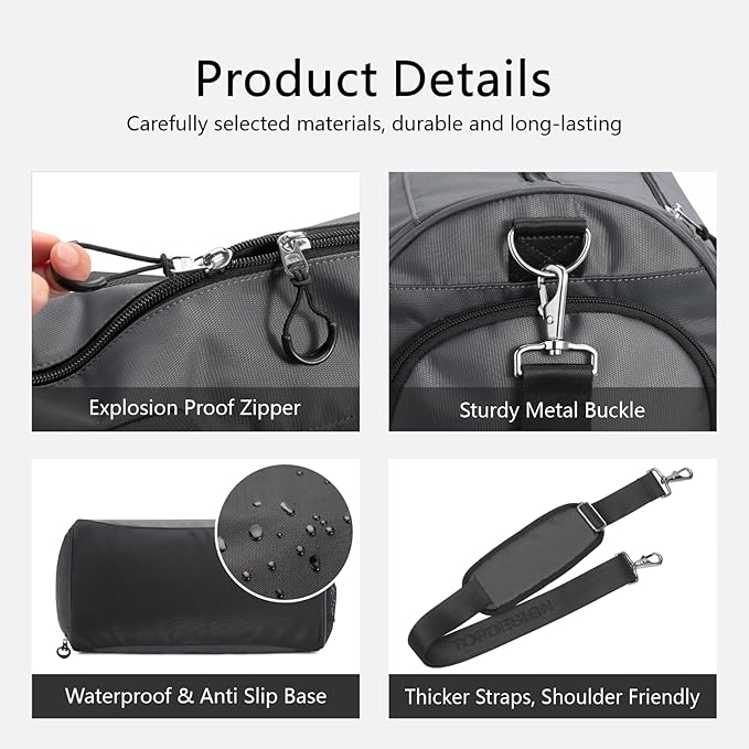 - MULTIFUNCTIONAL: It can be used for gym, sports, fitness, workout, travel, camping, hiking, cycling trip and other outdoor activities. Also good as a weekender, luggage, carry-on. The adjustable and removable shoulder strap offering flexibility for hands-free experience or a quick grab-and-go option.
