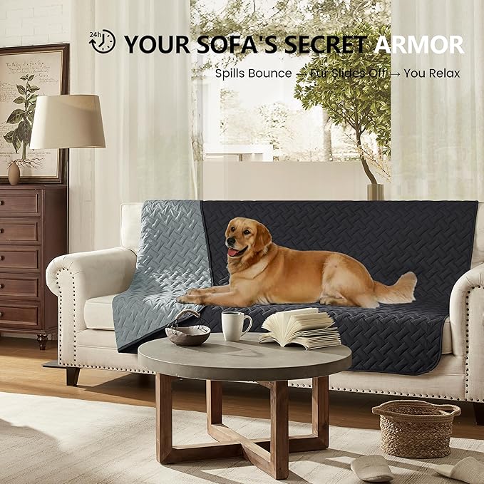 gogobunny 100% Double Sided Waterproof Dog Blanket Soft Pet Bed Cover Reversible Protect Furniture Couch Sofa Car for Puppy Cat (Dark Charcoal/Light Charcoal, 30x30 Inch (Pack of 1))