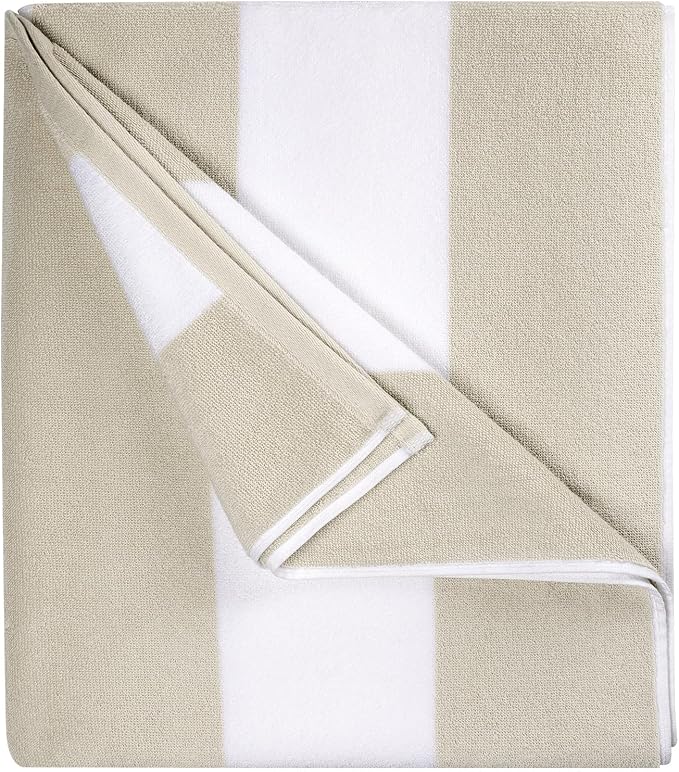 Cotton Oversized Beach Towel - 40 x70 Inch Extra Large Striped Pool Towel, Big Soft Terry Cloth Beige Cabana Swim Towel