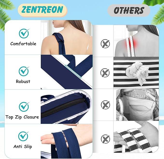 - 🏖️【 50L Large Capacity Beach Bag】 This Beach Bags For Women Has a 50L Large capacity, easily accommodating all the essentials for a family outing. XXL beach tote bag (20.8''x7.8''x15.7'') with zipper can hold extra clothing, shoes, sunscreen, water bottles, toiletries,3-6 large beach towels, beach toys and sealed lunch boxes etc. (Friendly reminder: This beach bag is significantly larger than your average tote bag, offering super-sized capacity.)