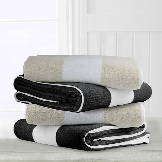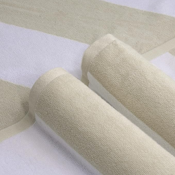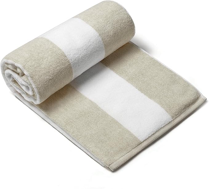 CLOWOOD Plush Oversized Beach Towel - Cotton 40 x 70 Inch Large Thick Chiffon Striped Cabana Pool Swimming Towel
