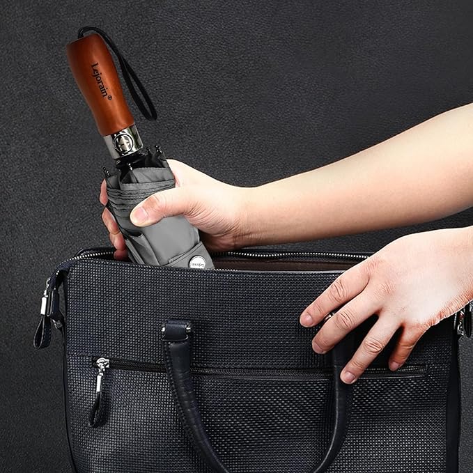 - Waterproof and fabric and luxury real wooden handle: This large umbrella is made of 210T fabric with a specialized Dupont Teflon coating, making it waterproof and fast-drying. Also, the ergonomic real wood handle with finger-notches makes it comfortable to hold and easy to grip.A perfect windproof golf/travel/business umbrella for you