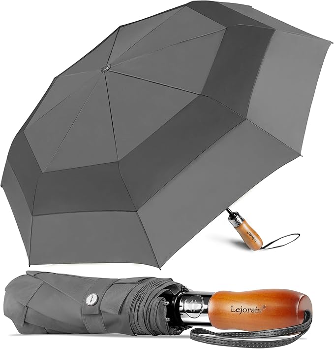 Lejorain Large Folding Golf Umbrella - Compact Mens Umbrellas Travel Rain and Windproof 54inch Collapsible Automatic Open Close Umbrella 210T Teflon Vented Double Canopy
