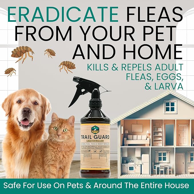 - ✅ PREVENT& ELIMINATE FELA INFESTATIONS: Trail Guards powerful formula effectively stop flea infestations before they start and eradicates existing ones on your dog and around your house. Safe to use on your belongings, it helps stop infestations quickly, brining relief to you & your dog.