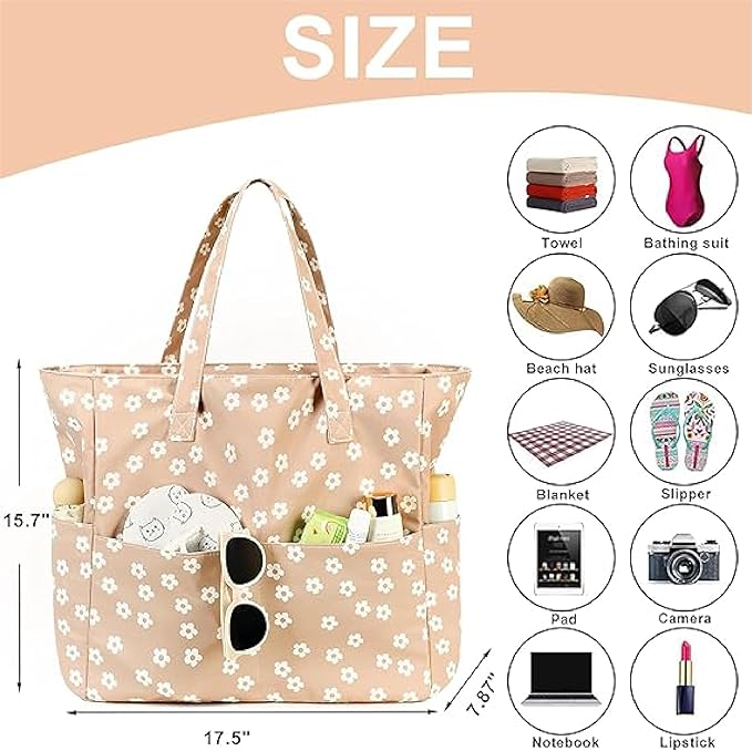 - Large beach bag in size 17.5*7.87*15.75 inches for women ladies to go to beach or pool, with smart design wet compartment to hold dirty clothes and wet towels after sports