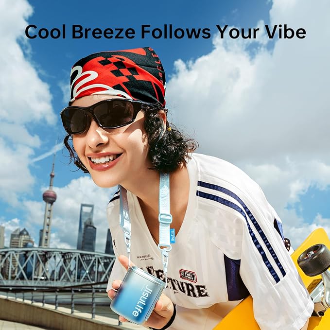 - 4-in-1 Hands-Free Design: Portable fan easily transform into a neck, handheld, waist, or wearable cooler.Switch to neck mode instantly with the included lanyard, clip it to your belt, bag, or clothes with the sturdy back clip. delivering cooling freedom while jogging, hiking, or camping—your ultimate hands-free companion