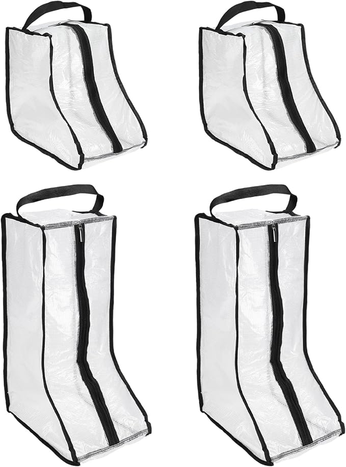 Boot Storage Bags [4PCS] - Plastic Tall Short Boot Carry Bags Clear Shoe Bags with Handle for Travel & Daily Use - [Black] Waterproof & DustProof Boot Bags for Cowboy Boots