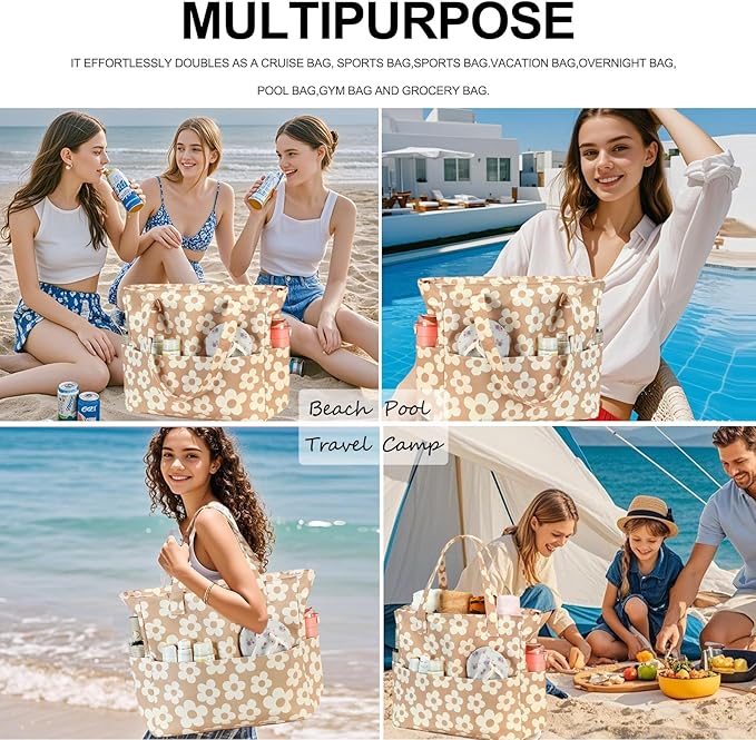Beach Pool Bags Tote for Women Ladies Large Gym Tote Carry On Bag With Wet Compartment for Weekender Travel Waterproof